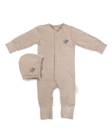 Paired with the soft organic cotton onesie, this set ensures all-day comfort and easy movement. With fold-over mitten cuffs and convenient snap closures, dressing your baby is simple, while keeping them warm and protected.