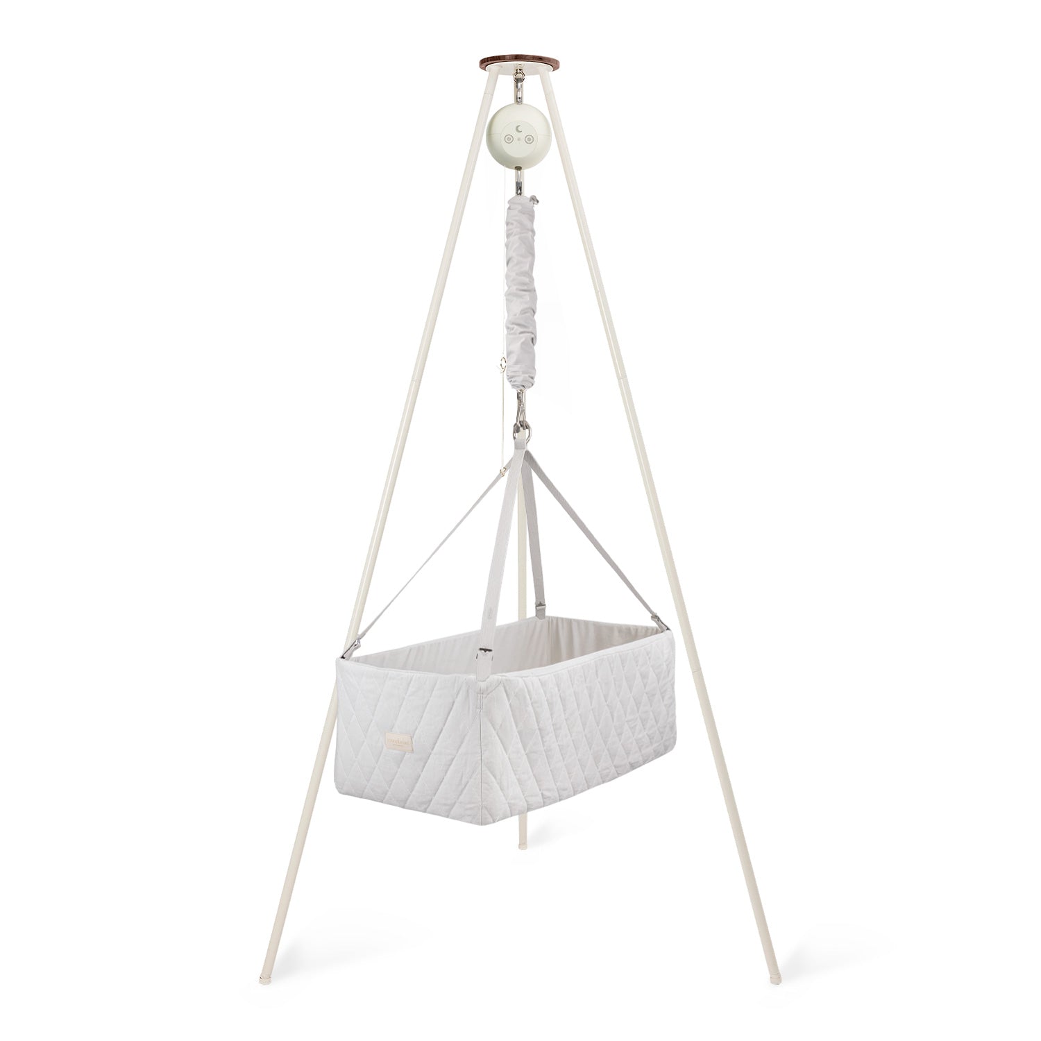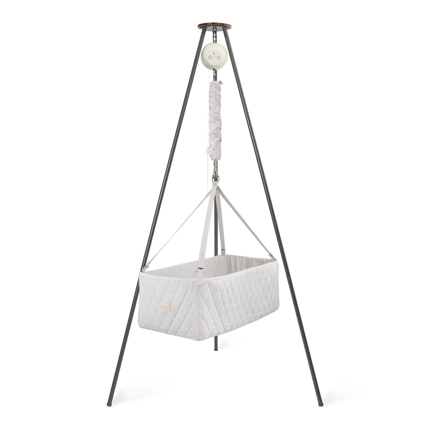 Featuring clean and modern Scandinavian styling, the cradle has been created with sleep experts in Denmark to offer a safe and calming sleeping habitat for your little one. It can be rocked at your chosen speed and for your chosen length of time thanks to one of our quiet and easy to operate motors. You have the choice between one of our app-controlled cradle bouncers - the Motor Connect Basic or the Motor Connect Premium. Attach both of these to our sturdy Scandinavian-designed tripod stand and you’re ready for any part of your home to be instantly turned into a cosy sleep zone.