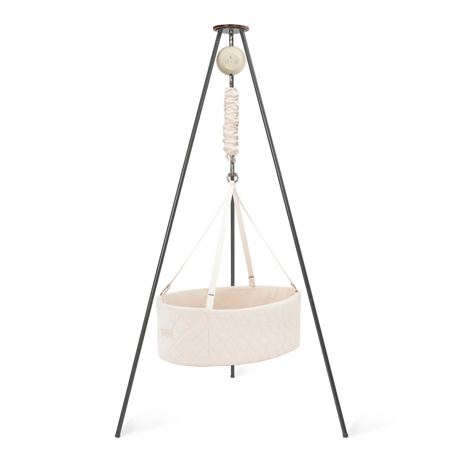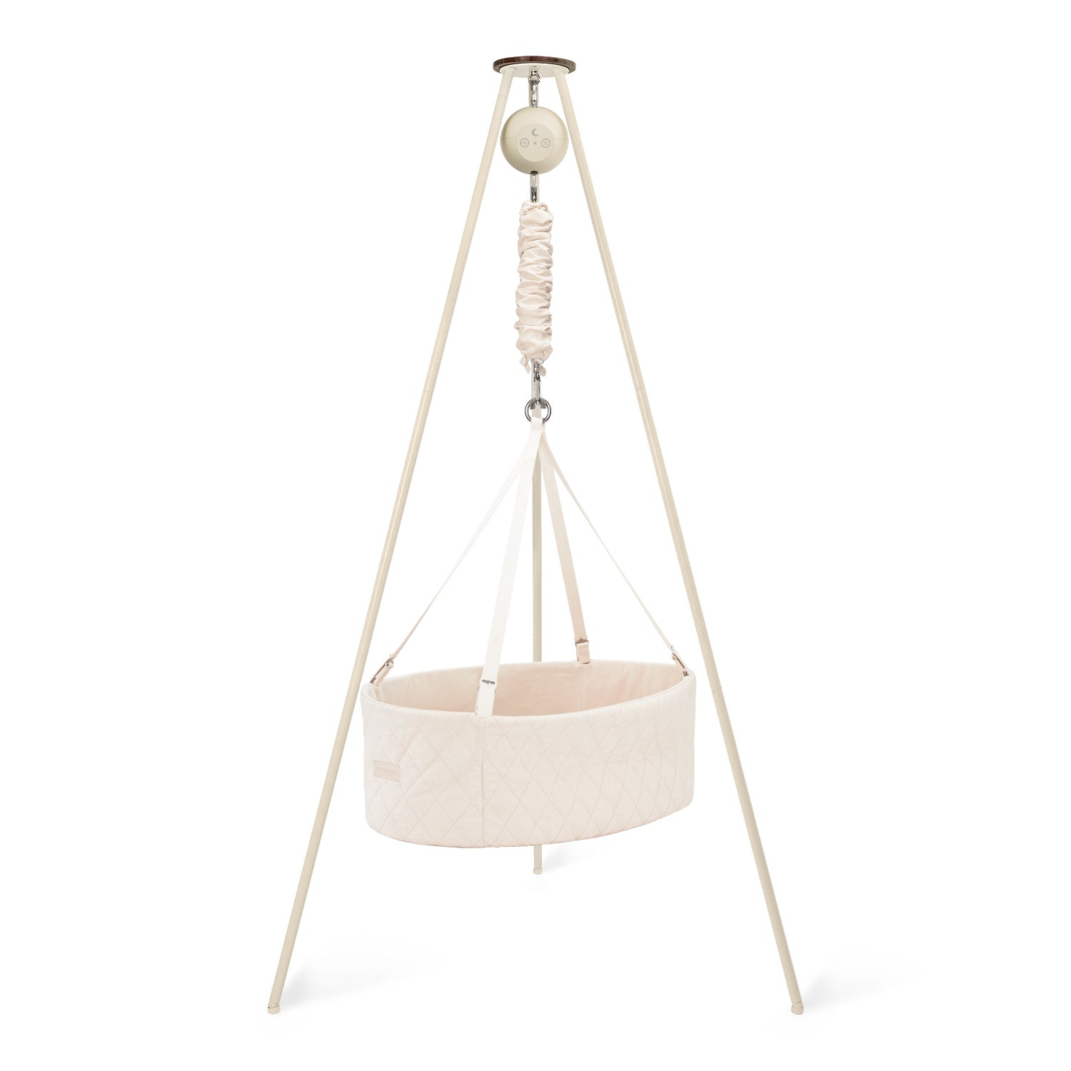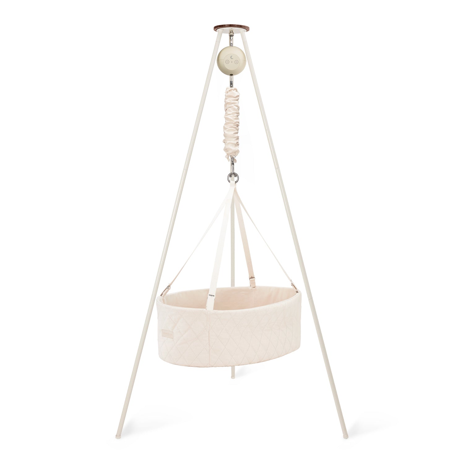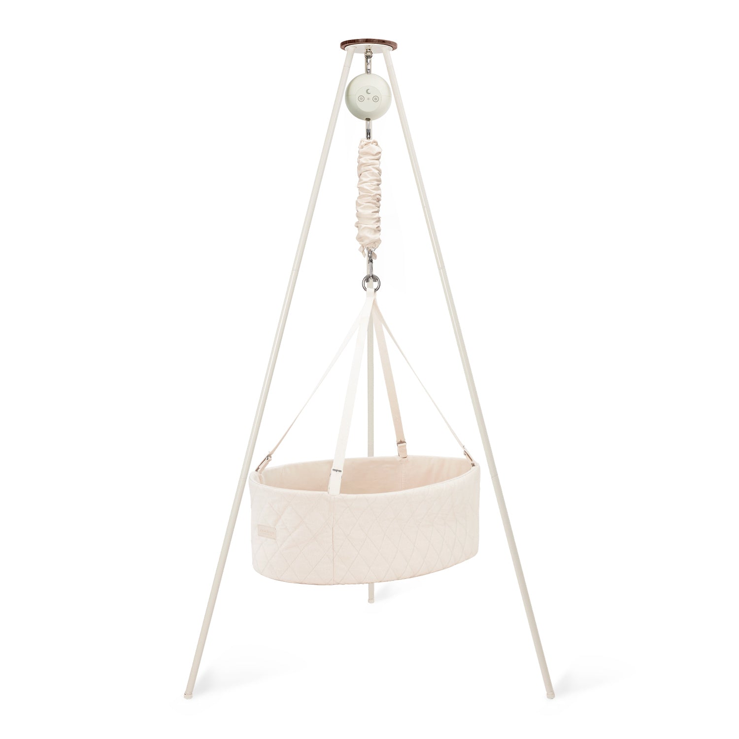 Create a peaceful sleep space for your baby with our cozy oval cradle, featuring a flat base for extra comfort and gentle rocking from our motor. Paired with a sturdy, Scandinavian-style tripod stand, this setup brings soothing relaxation and looks effortlessly stylish in you home.
